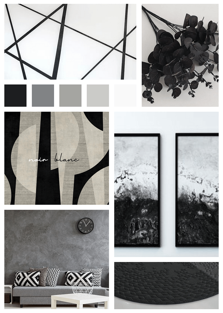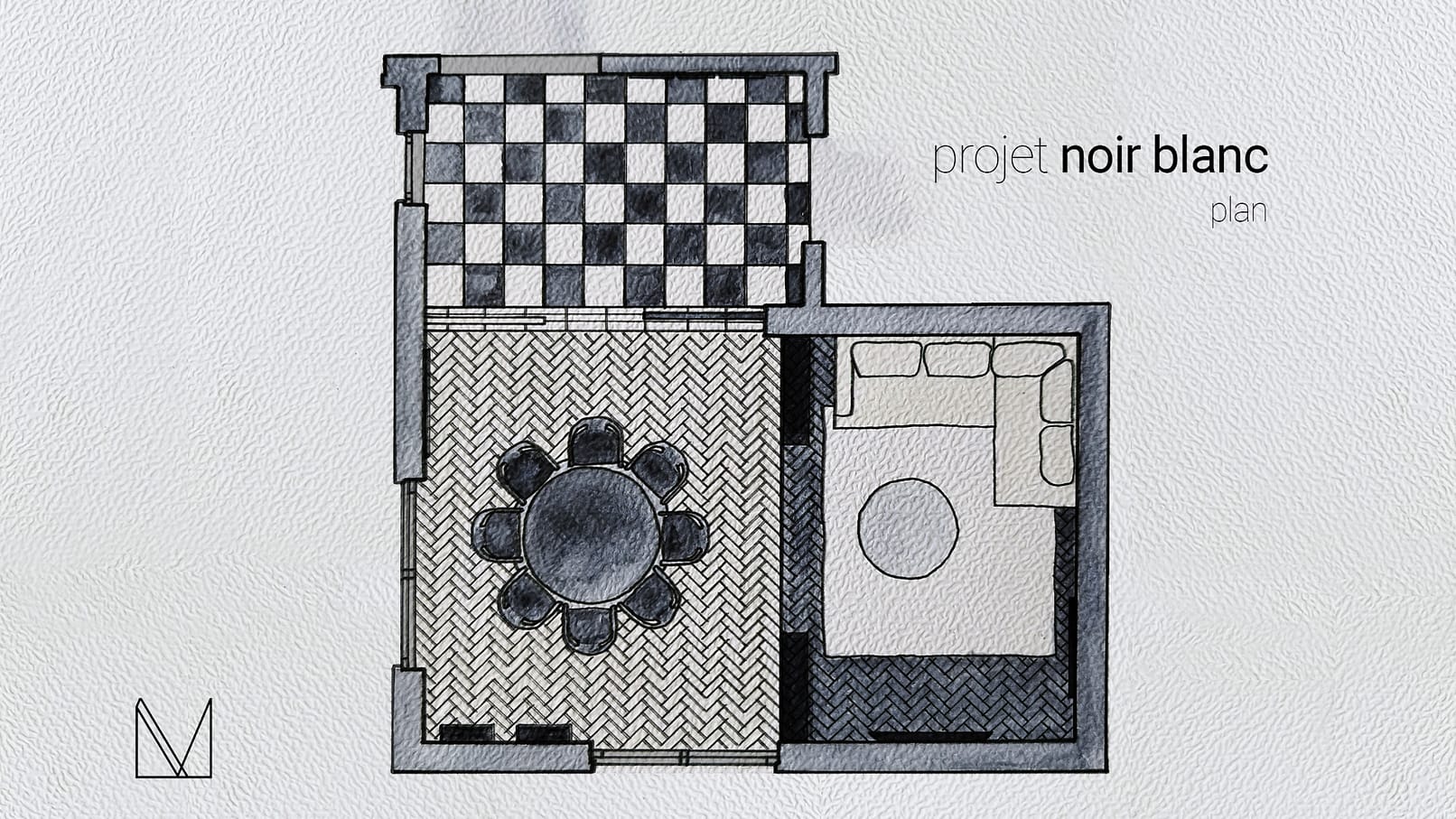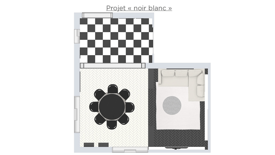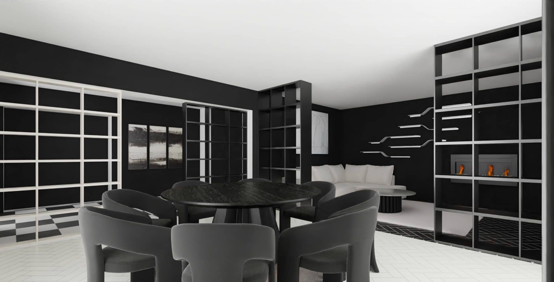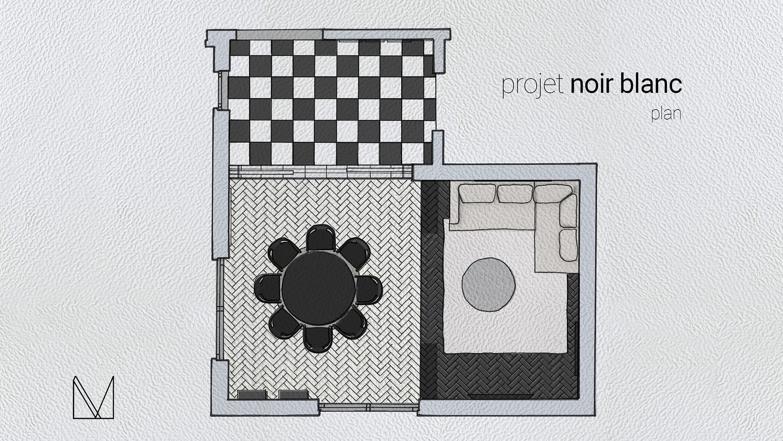 Projet d’aménagement d’une pièce à vivre sur le thème « noir et blanc ».