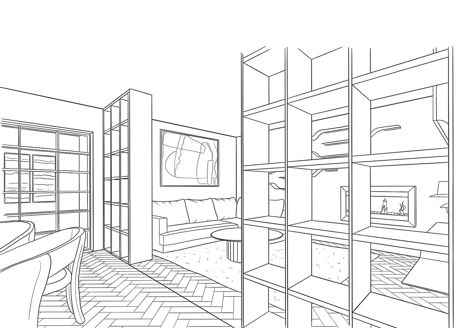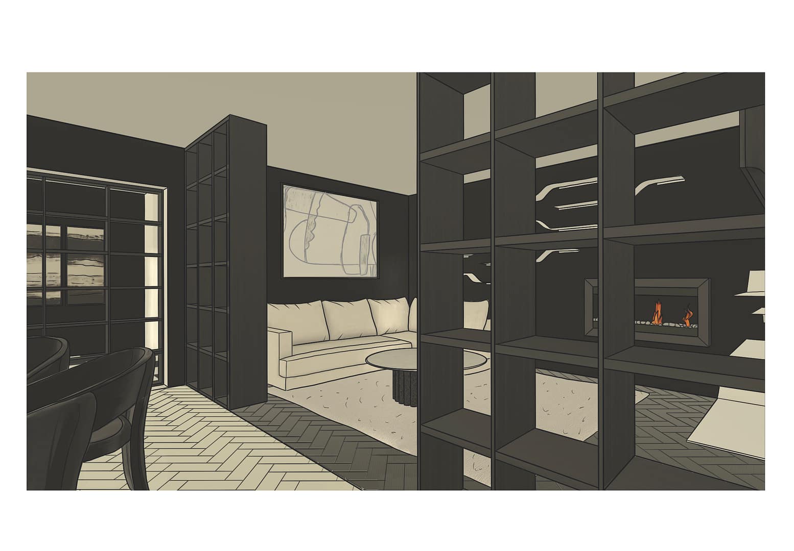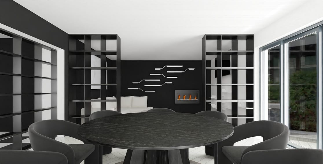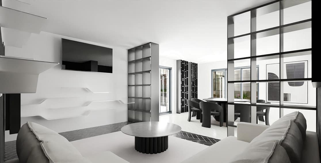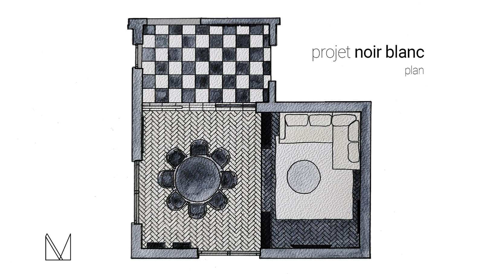 Projet d’aménagement d’une pièce à vivre sur le thème « noir et blanc ».